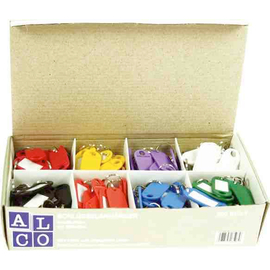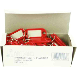 - Etichete pentru chei, confectionate din plastic flexibil, cu inel metalic. Culorile sunt asortate, iar cutiile sunt disponibile fie cu 50 de bucati, fie cu 200