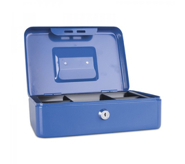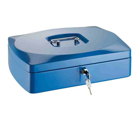 Caseta metalica pentru bani, cu margini rotunjite Prevazuta cu tava pentru monezi Cu maner pentru transport Se poate incuia, prevazuta cu 2 seturi de chei Dimensiune: 250 x 180 x 90 mm Culoare: albastru
