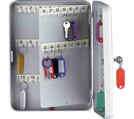 Din metal foarte rezistent, lacuit.  Prevazut cu incuietoare (3 chei) si sistem de agatare pe perete. Capacitate: 105 chei.