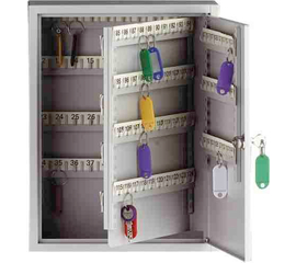Din metal foarte rezistent, lacuit.  Prevazut cu incuietoare (3 chei) si sistem de agatare pe perete. Capacitate: 140 chei.