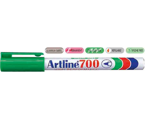 Permanent marker varf rotund, 0.7mm, corp metalic, ARTLINE 700 - verde
