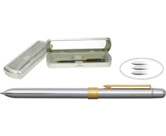 Pix multifunctional de lux, doua culori+creion mecanic 0.5mm, PENAC Slim - corp argintiu - accesorii