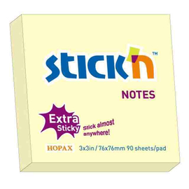 Notes autoadeziv extra-sticky 76 x 76mm, 90 file, Stick"n - galben pastel