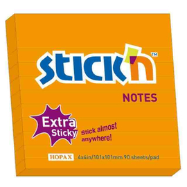 Notes autoadeziv extra-sticky liniate 101 x 101mm, 90 file, Stick"n - portocaliu neon