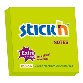 Notes autoadeziv extra-sticky 76 x 76mm, 90 file, Stick"n - verde neon