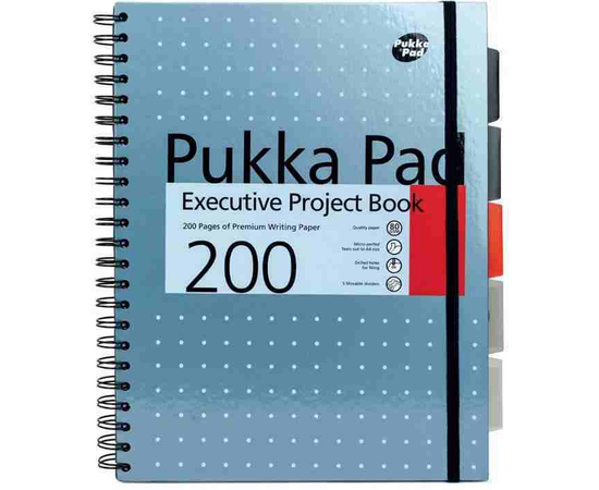 Project Book Executive A4, 125 file 80g/mp, cu spirala dubla, coperti PP, PUKKA Metallic - dictando
