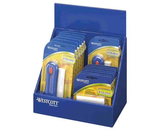 Radiera alba retractabila in suport plastic cu perie + 3 rezerve, WESTCOTT Microban -culori asortate