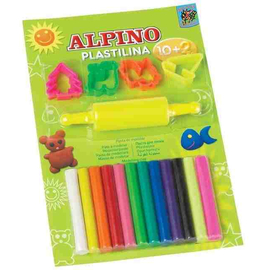 Kit 10 +2 culori x 17gr plastelina + 4 forme modelaj + roller, in blister, ALPINO
