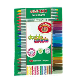 Carioca cu 2 capete, varf subtire/gros, 20 culori/set, ALPINO Double
