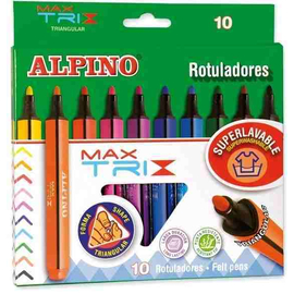 Carioca corp triunghiular, varf gros 4mm, 10 culori/set, ALPINO MaxTrix