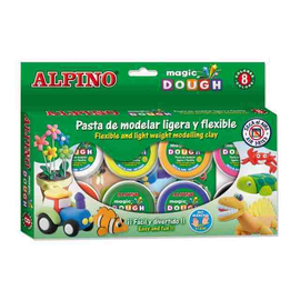 Kit 8 culori x 14gr plastelina magica + 4 seturi accesorii, ALPINO