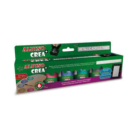 Vopsea acrilica metalizata, rezistenta la apa, 6 culori/set + pensula gratuita, ALPINO Crea+