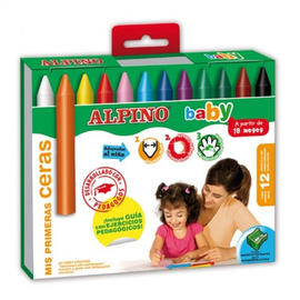 Creioane cerate, cutie carton, 12 culori/set, ALPINO Baby