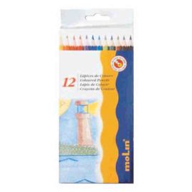 Creioane colorate, corp hexagonal, 12 culori/set, MOLIN Color Plus