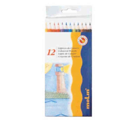 Creioane colorate, corp hexagonal, 12 culori/set, MOLIN Color Plus