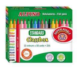 Carioca cu varf fin de 2,8 mm, cu cerneala care se poate sterge, in culori luminoase. Ideale pentru scoala.  216 buc.( 12 culori x 18 buc.) Superlavabile.