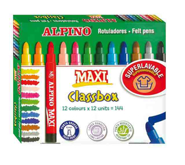 Carioca cu varf de 6 mm, cu cerneala care se poate sterge, in culori luminoase.  Superlavabile. 144 buc.( 12 culori x 12 buc.), cutie Classbox.