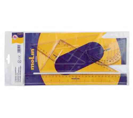 Set geometrie, contine: rigla 30 cm, raportor, 2 echere, MOLIN