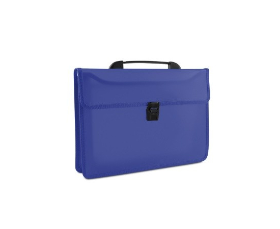 Servieta din plastic PP, cu 2 compartimente, cu inchidere si maner, DONAU - albastru transparent