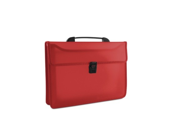 Servieta din plastic PP, cu 2 compartimente, cu inchidere si maner, DONAU - rosu transparent