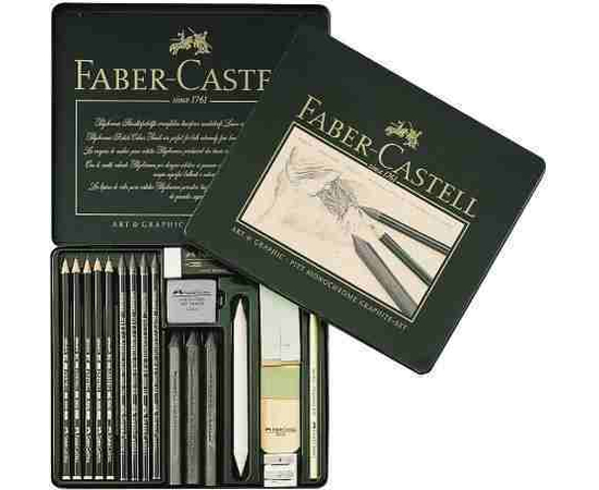 • Sortiment special selectat, constand in creioane grafit CASTELL 9000, creioane grafit PITT MONOCHROME si accesorii, potrivite pentru incepatori, indeplinind standardele profesionale.