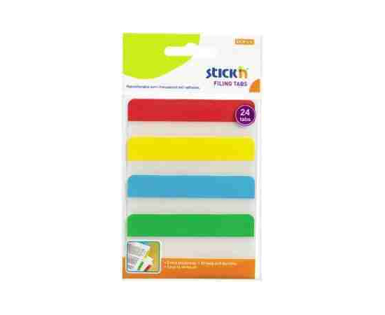 Stick index plastic transp. cu margine color 38 x 76 mm, 4 x 20 file/set, Stick"n - 4 culori neon