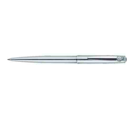 Corp negru, din material de calitate, gravat prin tehnica guilloche. Mecanism actionat prin rotire, ambele capete din metal cromat lucios, clip rezistent, rezerva de culoare neagra, cerneala cu uscare rapida.