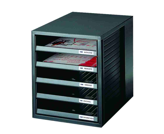 Suport plastic cu 5 sertare pentru documente, HAN - (open) - negru/negru