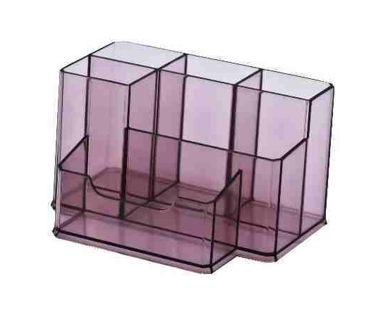 Suport plastic pentru accesorii de birou, 6 compartimente, 105 x 85mm, KEJEA - fumuriu