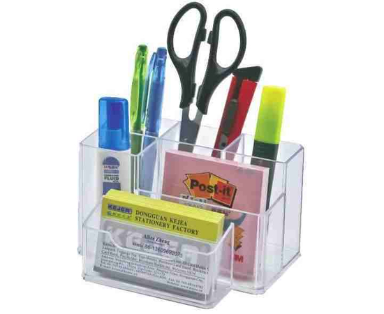 Suport plastic pentru accesorii de birou, 6 compartimente, 105 x 85mm, KEJEA - transparent