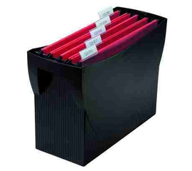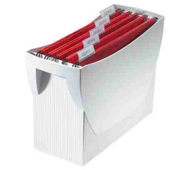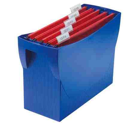 • Suporti pentru dosare suspendabile, confectionati din plastic rigid si prevazut cu capac cu maner pentru transport