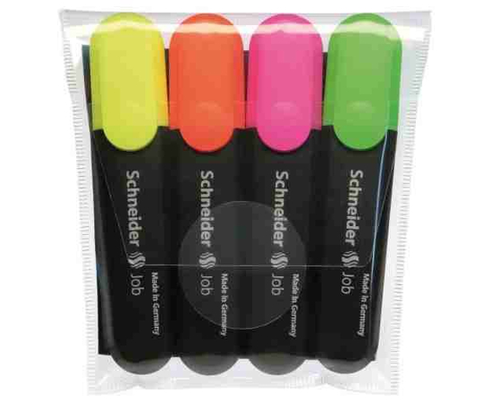 Textmarker varf lat, 4 cul./set, SCHNEIDER Job - (G, O, V, R)